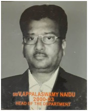 In 1971 Sri. V. Appalaswamy Naidu Joined the Department later he became H.O.D. and Principal, he was retired in 2005.